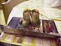 Description: My two lovebirds Wendy and Peter chewing on paper. I love how they meet in the middle They are both 12-13 year old male pastel-mutation peach faced lovebirds. I've had them since i was 3. Some people have been commenting about their feather-plucking, it's just a bad habit, just like people who bite their nails. It's not like I never play with them, I play with them everyday, but they like to pick their feathers while they sit on my shoulder. It's hard to stop them from doing it. |
